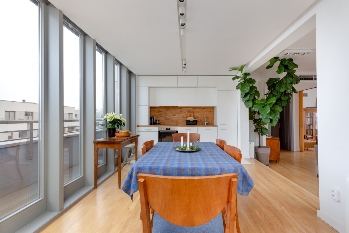 Mieszkanie zdecydowanie wyjątkowe. Jedyne mieszkanie na klatce. Ostatnie piętro. Winda do mieszkania. Południowo zachodnia ekspozycja. 130m tarasu.