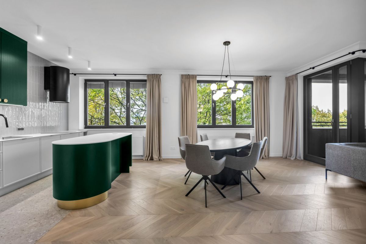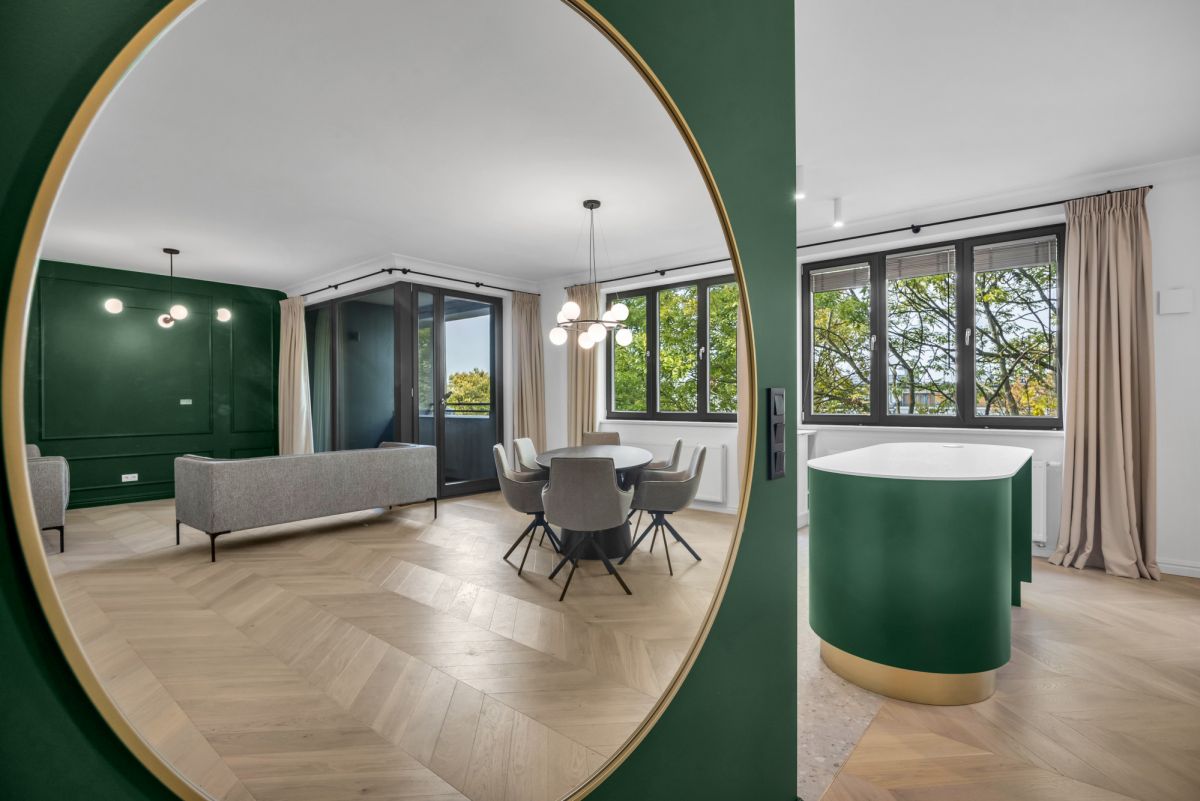 Apartament znajduje się w odrestaurowanej przedwojennej kamienicy z 1938 roku przy Puławskiej i Merliniego. W okolicy parku królikarnia oraz morskie oko. Jest to kameralna inwestycja, która została zrealizowana w tym roku 2023.