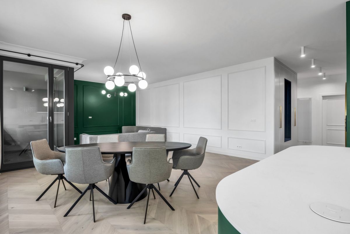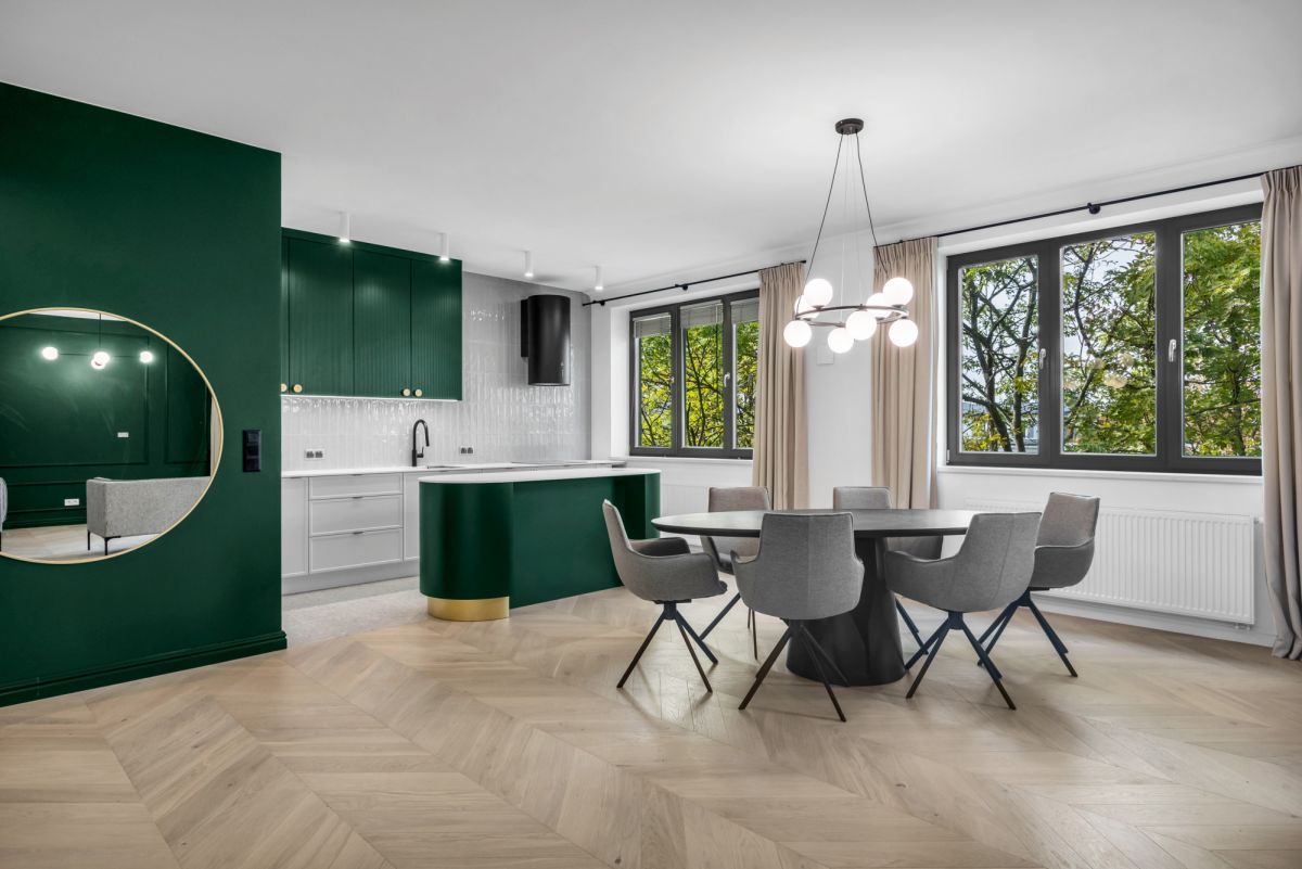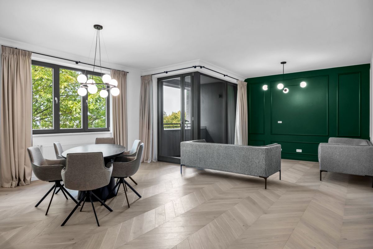 Salon jest bardzo duży i przestronny oraz wychodzi na stronę południowo zachodnią, drzewa widoczne z okien dodają mieszkaniu uroku, z kolei wszystkie sypialnie mają ekspozycję na cichą oraz intymną stronę.